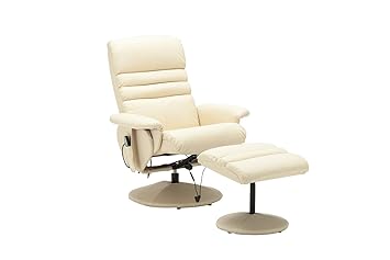 Electric Armchair W Ottoman Artificial Leather Tv Recliner Massage Chair Swivel Seat 7902 Cream White
